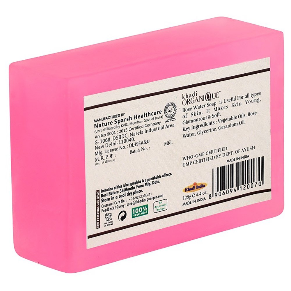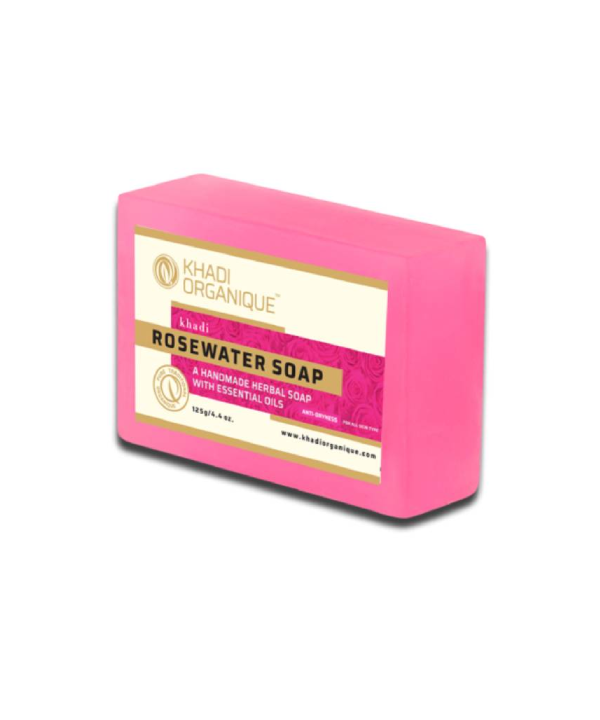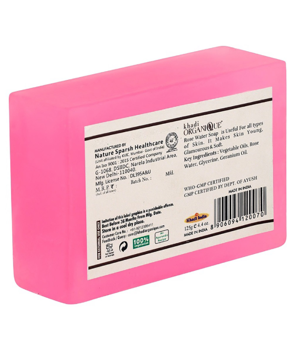 ال صابون خادي أورجانيك مصنوع يدويًا من ماء الورد الطبيعي غني بالرائحة العطرية لمستخلصات ماء الورد التي تعالج بشرتك بجرعة كبيرة من الرطوبة.