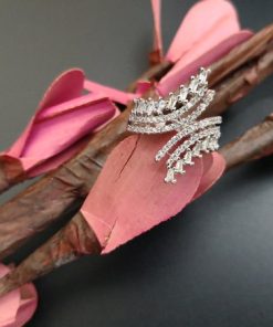 خاتم ذهبي مصنوع بشكل جميل مع سوار من الزركون وزركون كبير في المنتصف لتعزيز جماله.