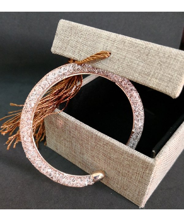 روز جولد مصممة بشكل جميل متشابكة الإسورة مع بلورات مقفلة داخل تصميمها السلكي.