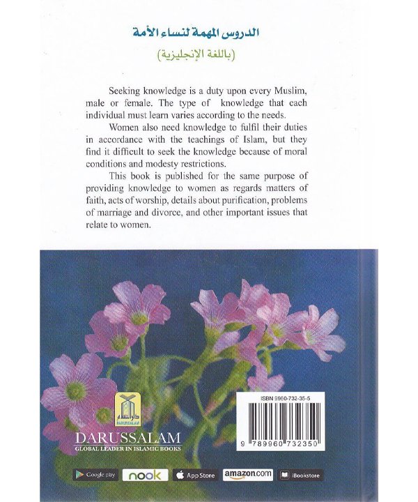 تم نشر هذا الكتاب دروس مهمة للمرأة المسلمة لتوفير المعرفة للمرأة فيما يتعلق بمسائل الإيمان ، وأعمال العبادة ، وتفاصيل حول التطهير ، ومشاكل الزواج والطلاق ، وغيرها من القضايا الهامة التي تتعلق بالمرأة.