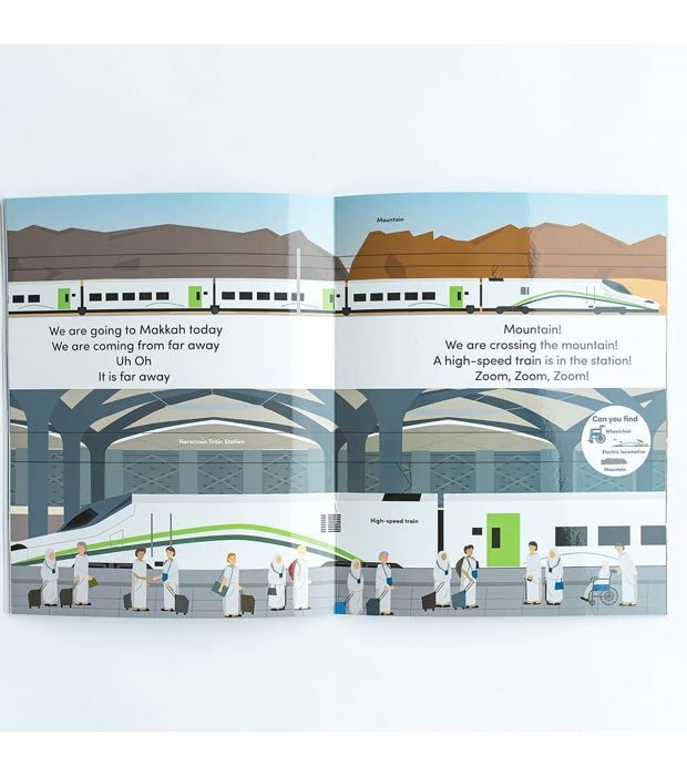 نحن نحب القطارات! في “نحن ذاهبون إلى مكة!” نواصل المغامرة للذهاب إلى مكة بالقطار فائق السرعة! مستوحى من القطار فائق السرعة الشهير في محطة قطار الحرمين فائق السرعة الذي يربط جدة بمكة.
