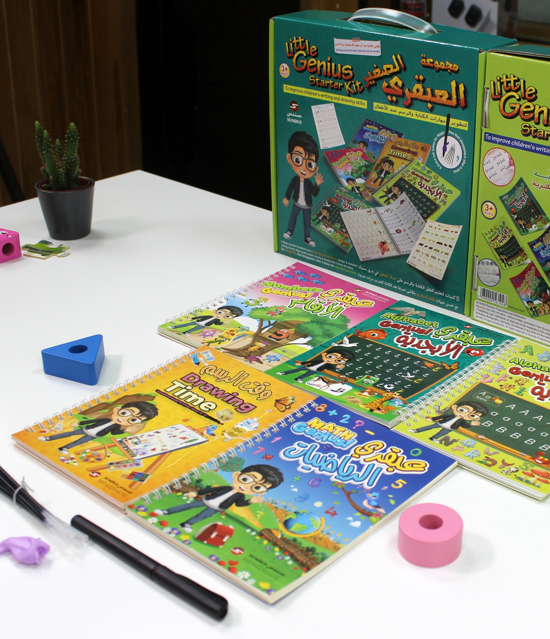 تعد مجموعة الكتب التعليمية Little Genius من بين أفضل إصداراتنا المتميزة ، والتي تسعى إلى تنمية مهارات طفلك في المراجعة والرسم بطريقة غير مألوفة وحديثة. تحتوي مجموعة كتب Little Genius على خمسة دفاتر: