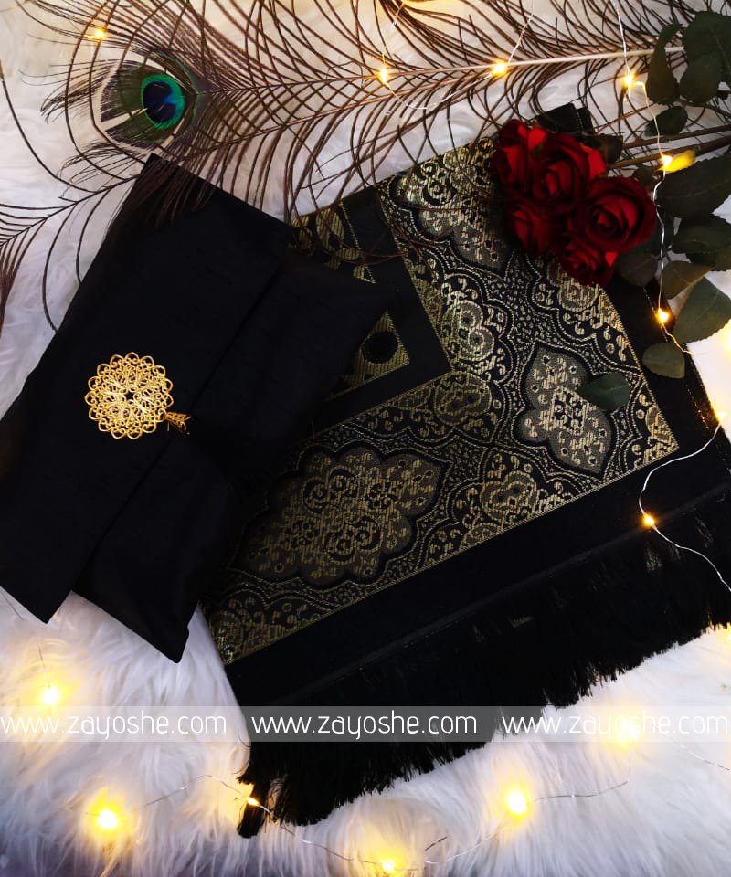 سجاد صلاة جميل وأنيق مصنوع من الحرير عالي الجودة. تأتي كل سجادة صلاة مع كيس حرير خاص بها.