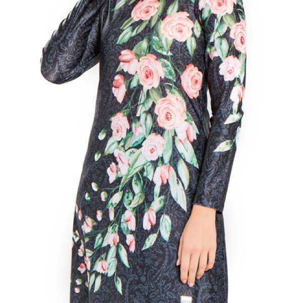 لباس سباحة أسود متواضع بنمط الأزهار مصمم بغرض توفير ملابس سباحة تغطية كاملة للسيدات للاستمتاع بالسباحة قماش عالي الجودة للسباحة ومقاوم للكلور وخفيف الوزن وأكمام كاملة.