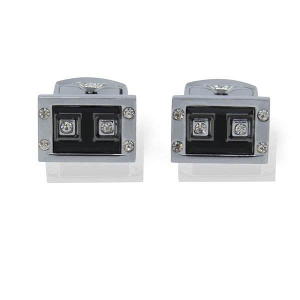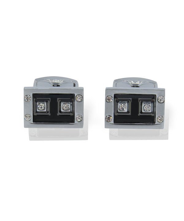 Rectangle Chrome with Crystal Cuff-links
