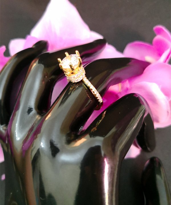 Beautifully crafted Golden Ring with zircon band and a big zircon in the center to enhance its beauty.