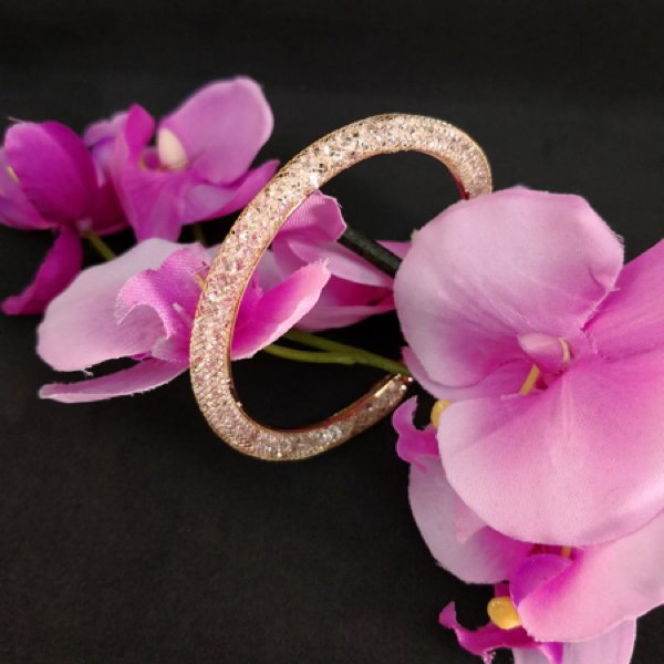 Beautifully designed Gold bangle with crystals locked up withing its wired design.