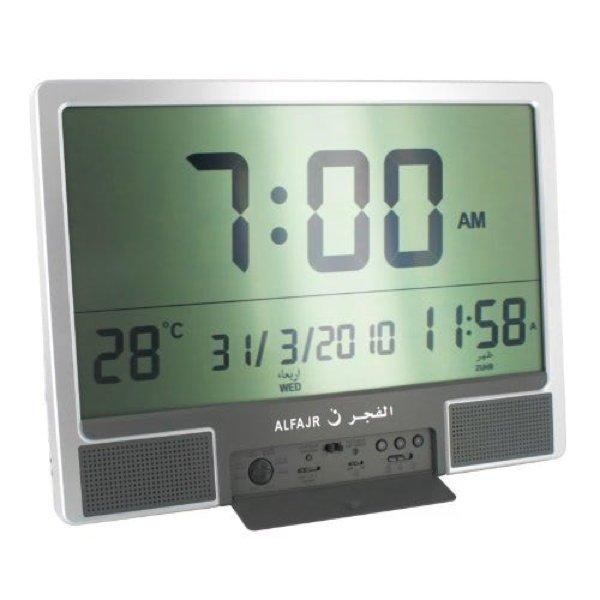- A high-quality digital Azan sound for all prayers (including complete Fajr azan) can be played. With azan volume control fitted in all clock models.