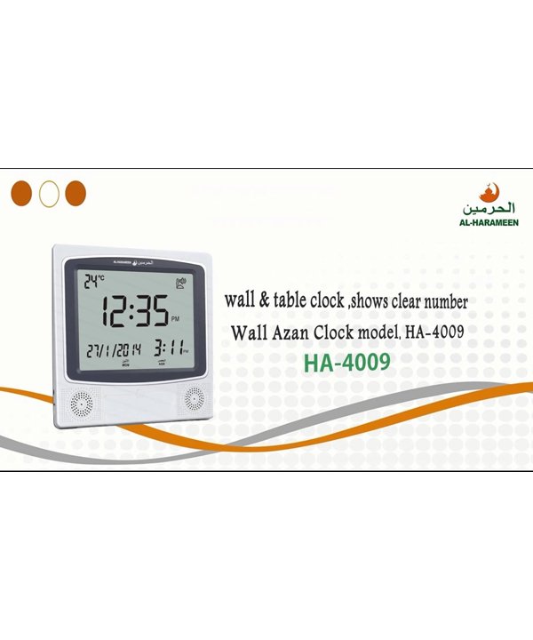 - Characterized AL-HARAMEEN O’clock with a high-quality Azan sound for all prayers with azan volume control fitted in all clock models.
