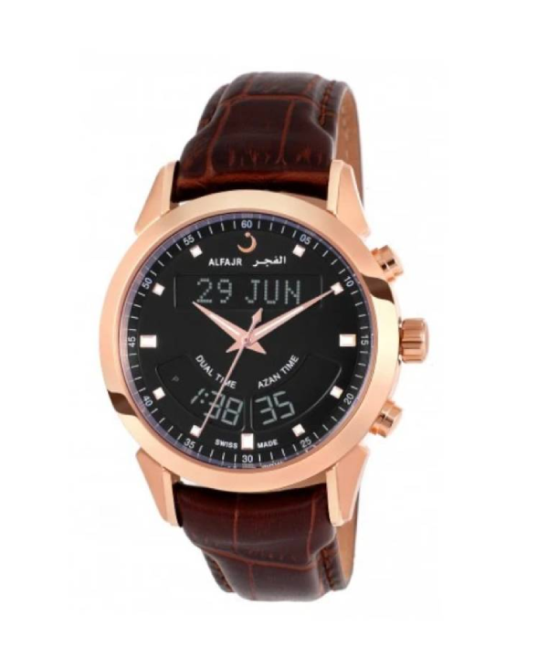 Al Fajr Deluxe Leather Watch is an azan watch with Genuine Brown Leather Strap.