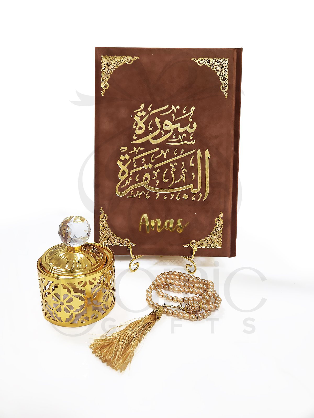 Surah Baqarah With Velvet Cover With Uthmani Script- Elevate your spiritual journey with our exquisite edition of Surah Baqarah, adorned with a luxurious velvet cover.
