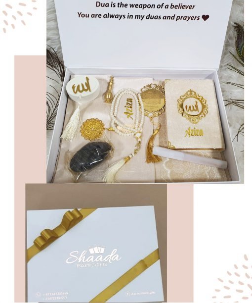 Embark on a journey of spiritual enrichment with our meticulously curated beige Islamic Gift Box. Crafted to perfection, our standard package includes: