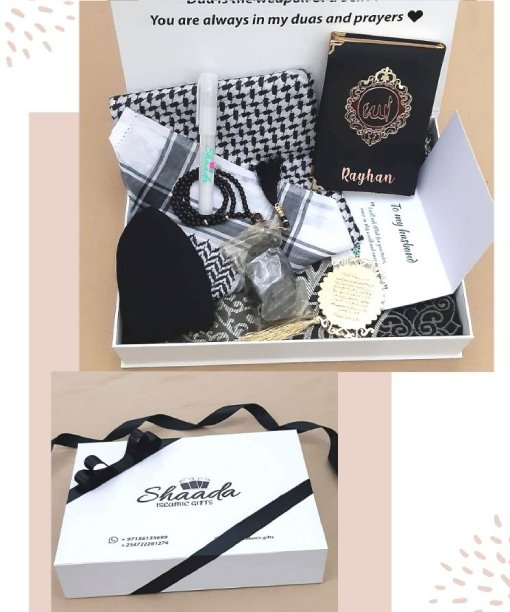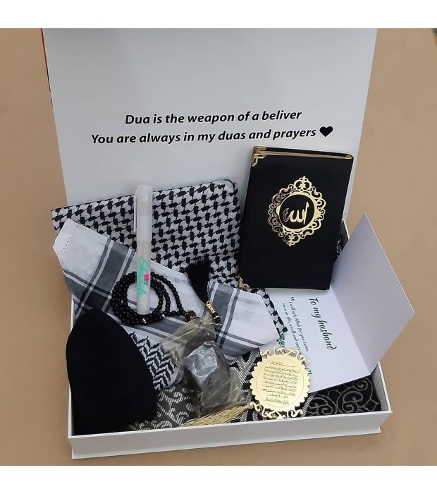 Embark on a journey of spiritual enrichment with our meticulously curated black Islamic Gift Box. Crafted to perfection, our standard package includes: