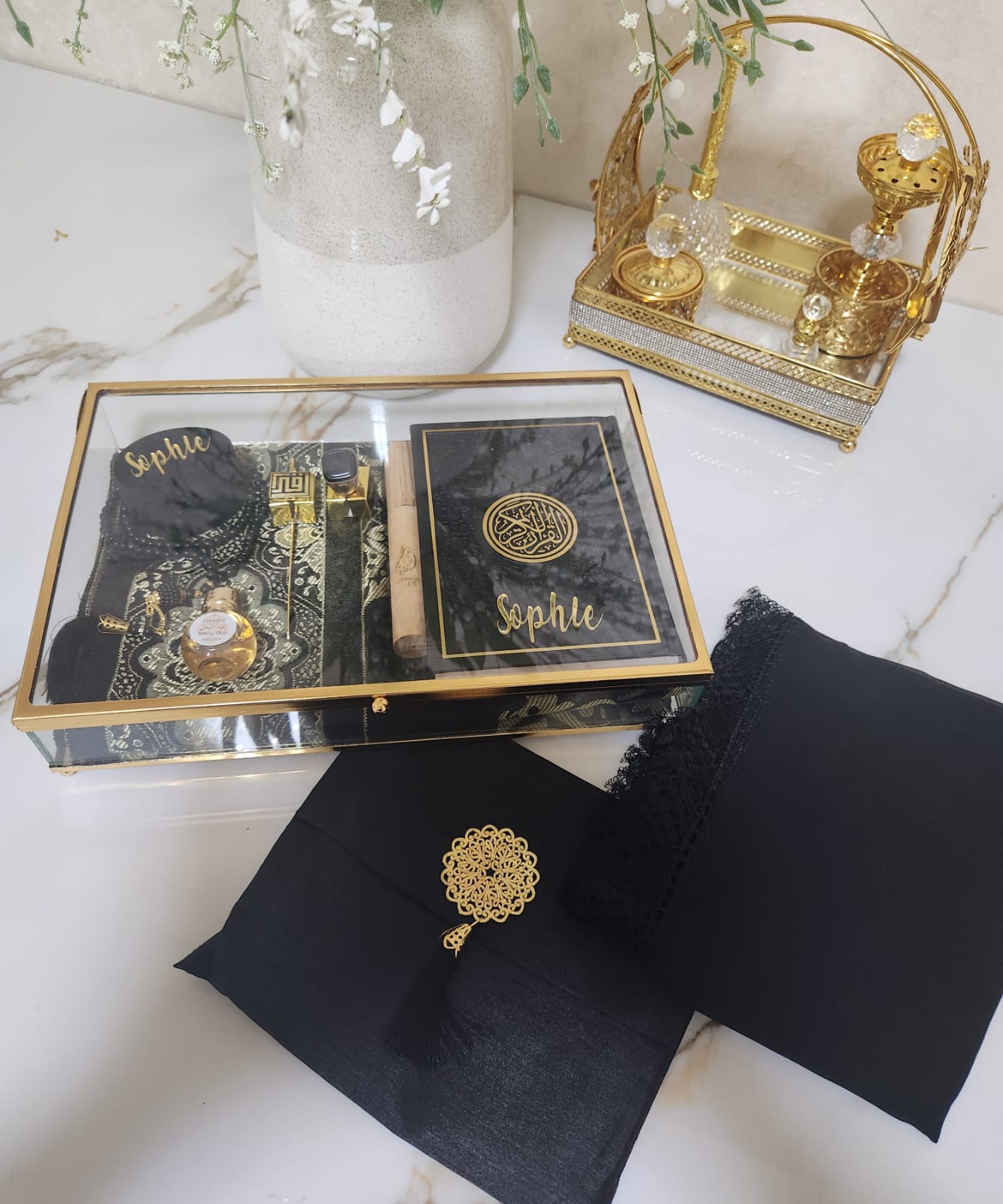 Introducing our “Luxury Islamic Gift Box For Her,” a majestic ensemble designed to honor and celebrate the special woman in your life. Immerse her in the splendor of Islamic tradition with this carefully curated set, thoughtfully personalized for a touch of regal elegance.