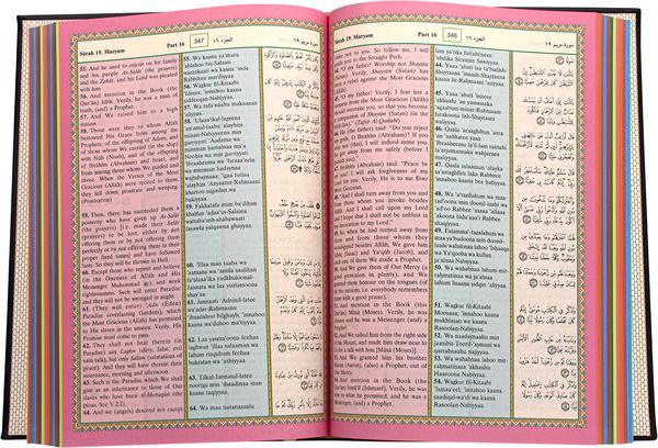 Enhance your Quranic studies with our Set of 9 Rainbow Colored Noble Quran. Each Quran features a modern English translation and transliteration in Roman script, making it easy for every Muslim to understand and recite.
