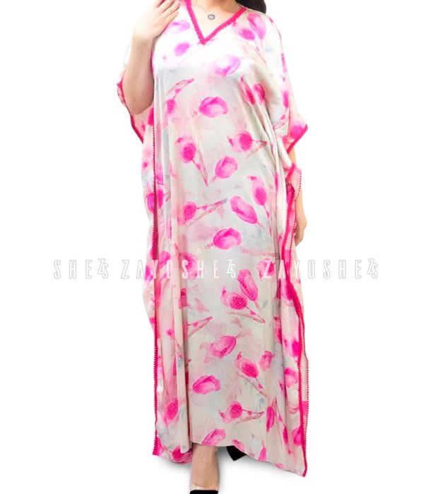 Satin Pink Rose Kaftan