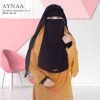 These simple two layers of long Niqab embellished with a ruffle on the headband is a perfect veil for the Muslimah hijab. The black color adds a certain elegance to the niqab. It is simple to wear so that you can easily cover your face.