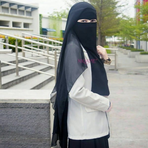 High Quality two layer Niqab, Soft, Spectacle friendly, Breathable, Lightweight, Cover the chest, Flowy long Layer behind.