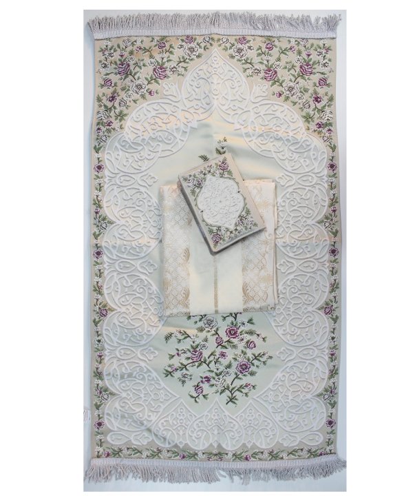 - Turkish Craftsmanship: Our prayer set is a testament to Turkish craftsmanship, showcasing a perfect blend of tradition and artistry. The prayer rug and Quran cover are meticulously handmade, featuring delicate silk embroidery that adds a touch of sophistication to your sacred space.